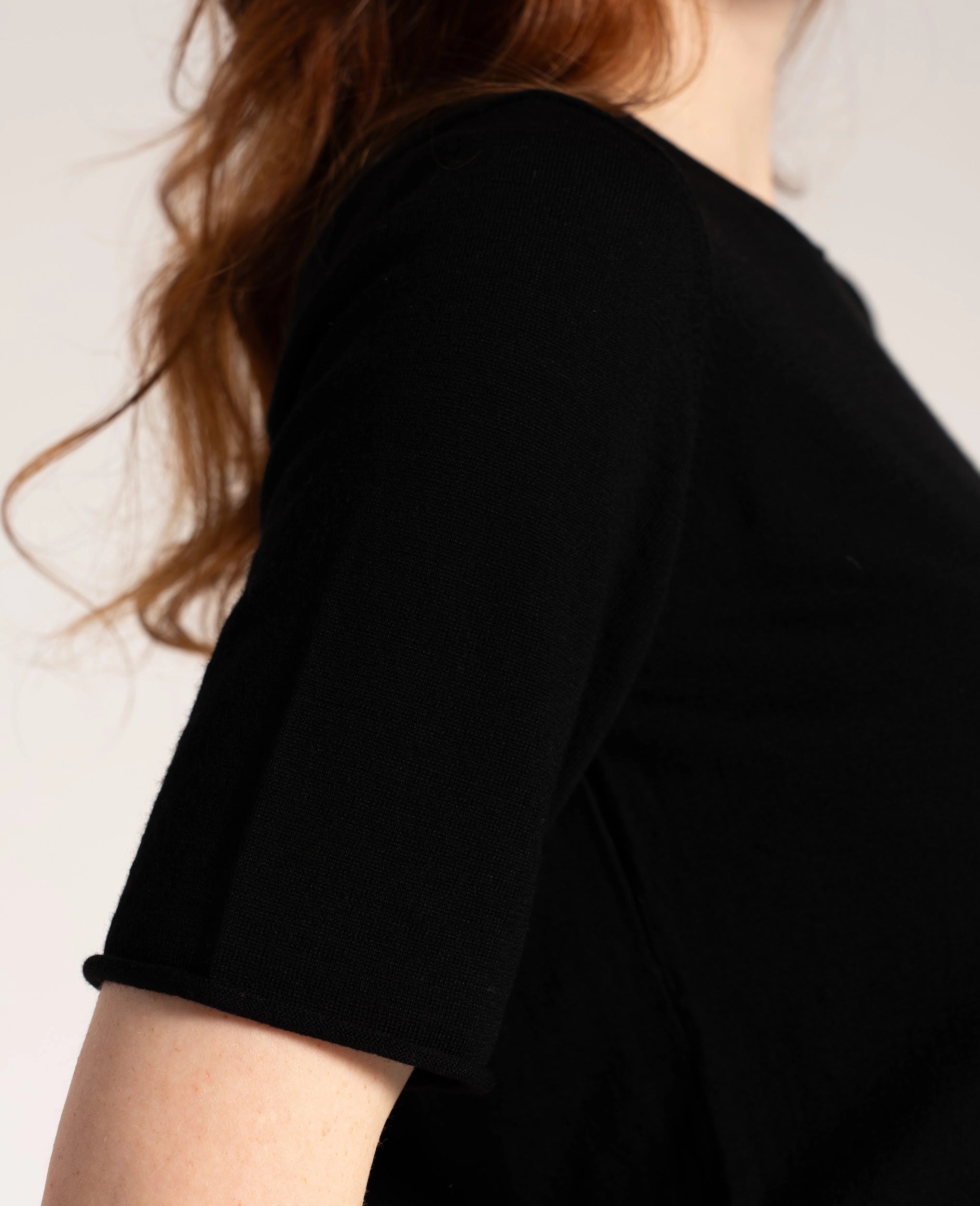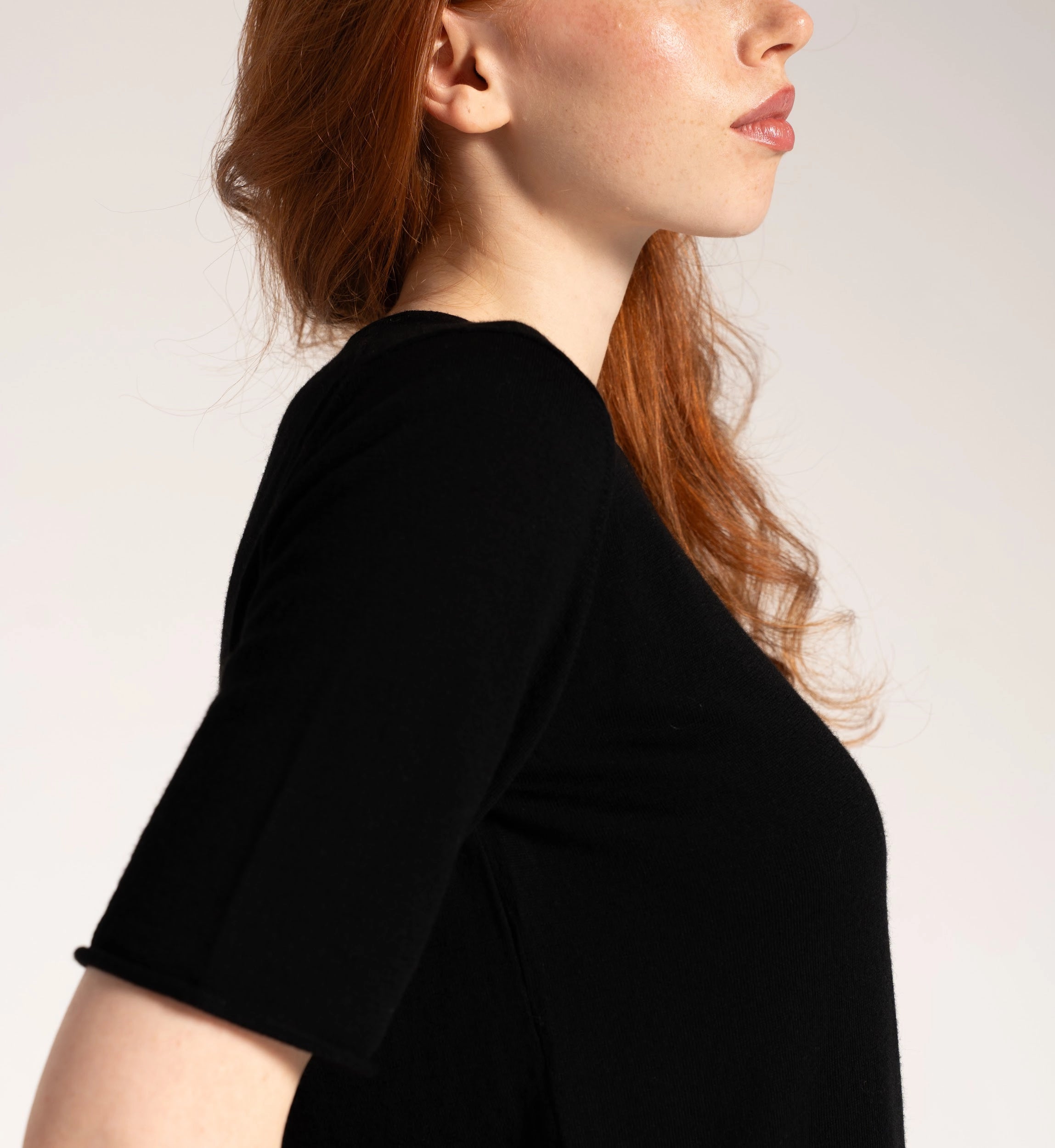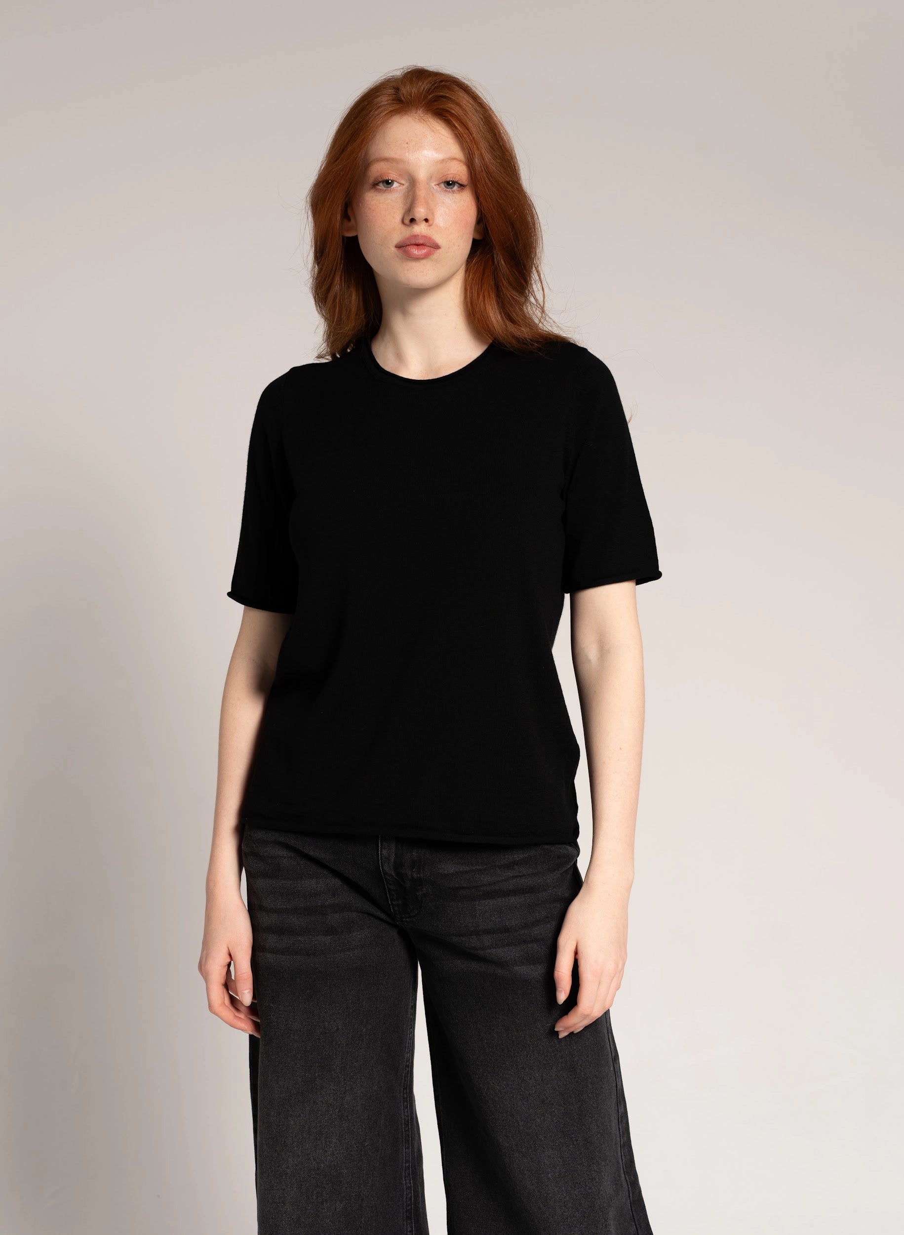 Stella T-shirt is crafted from 100% Italian merino wool, offering exceptional quality and a sleek, minimalist design. With a classic round neckline and a relaxed, tailored fit, it combines elegance and comfort. The natural breathability and lightweight feel make it perfect for layering or wearing on its own year-round.
